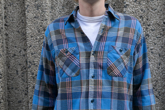 Sugar Cane L/S Twill Check Flannel Shirt - Blue