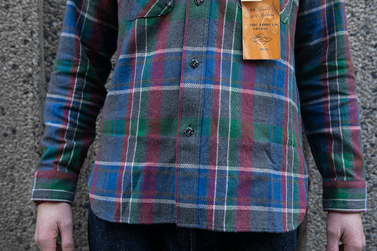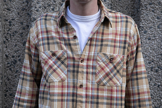 Sugar Cane L/S Twill Check Flannel Shirt - Beige