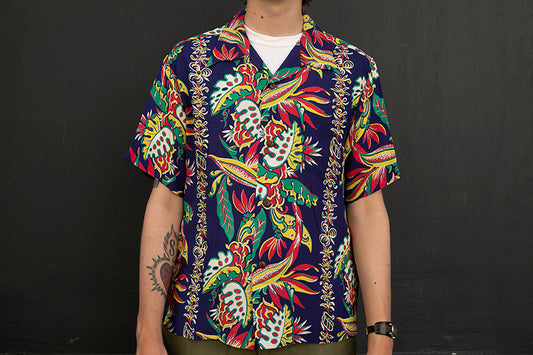 Sun Surf Hawaiian Shirt “Birds of Paradise Monstera” Navy