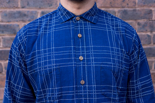 Sugar Cane ‘Fiction Romance’ Check Workshirt - Indigo