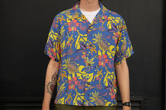 Sun Surf Hawaiian Shirt “Paradise Pictograph” Blue