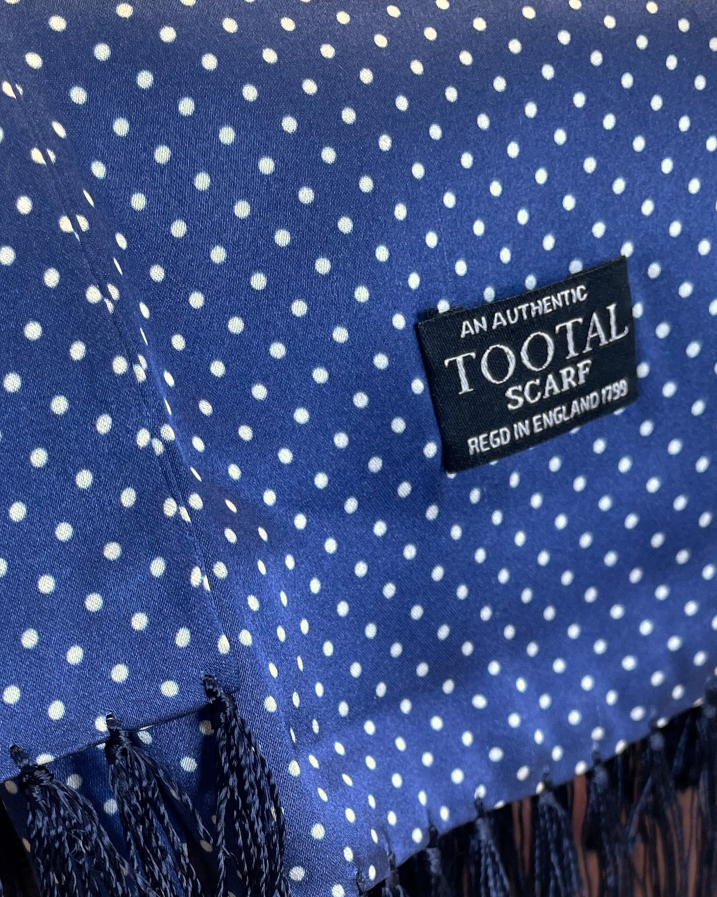 Tootal French Blue Polka Dot Silk Scarf – Retro Cool Meets Effortless Sophistication.