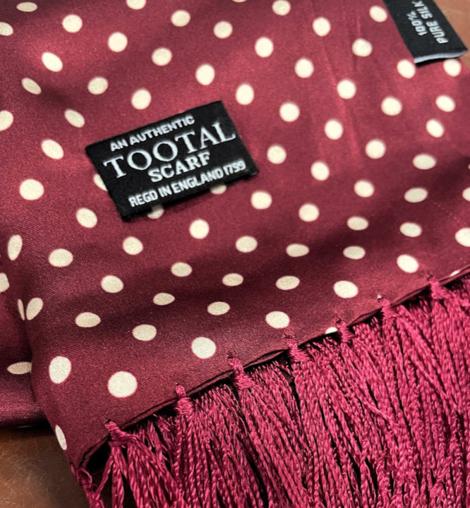 Tootal Wine Polka Dot Print Silk Scarf – Refined Style in Pure Silk